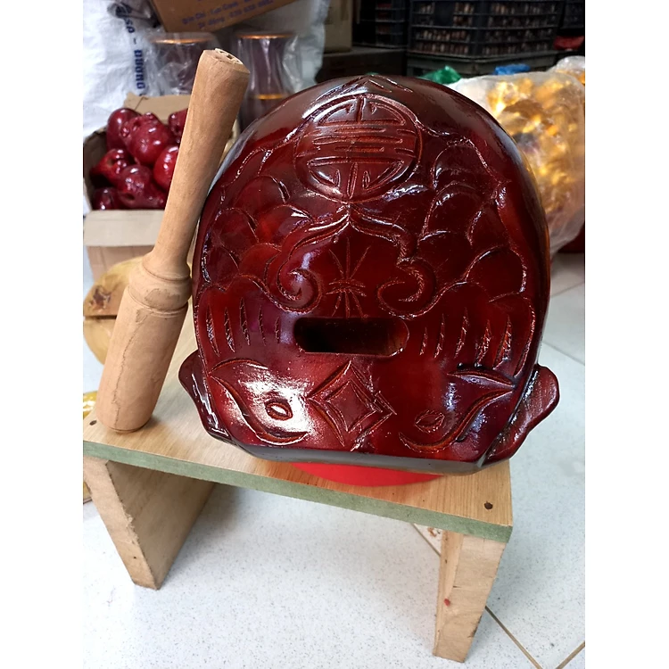 Mõ tụng kinh niệm phật bằng gỗ mít làm mầu mận chín kt 8cm