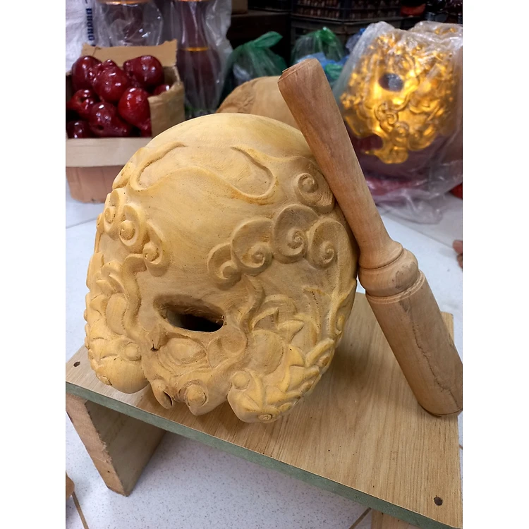 Mõ tụng kinh phật bằng gỗ mít để mộc gỗ không dác kt 12cm