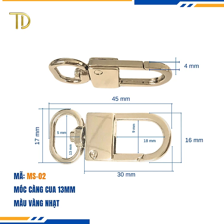 Móc càng cua túi xách, móc khóa càng cua túi xách, móc chó túi xách 13mm Mạ điện độ bền 5-8 năm