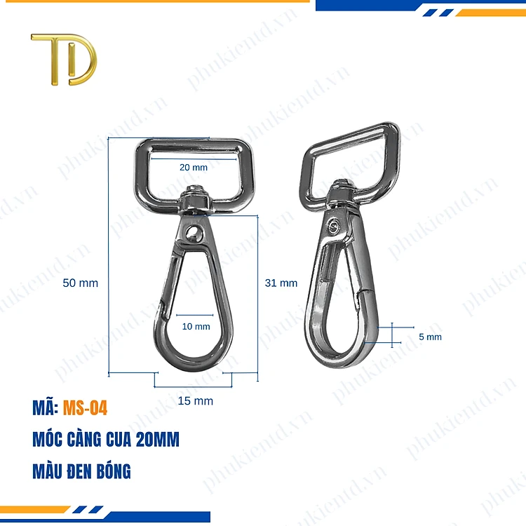 Móc càng cua túi xách,móc khóa càng cua túi xách,móc chó túi xách 20mm Mạ điện bền 5-8 năm