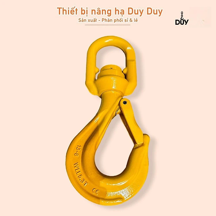 Móc Cẩu Xoay 360 Chống Xoắn Cáp - Móc Treo Palăng Có Vòng Bi, Chốt An Toàn Chịu Tải 1 Tấn - 5 Tấn