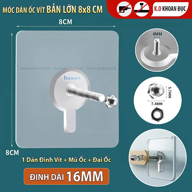 Móc Dán Tường Có Đinh Ốc Vít Miếng Dán Tường Đóng Đinh Tiện Lợi Ko Khoan Đục Tường