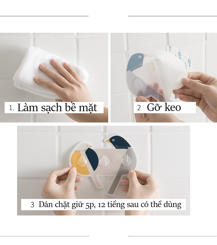 Chịu lực tối đa 2kg dùng để treo vật dụng nhà tắm, nhà bếp, phòng khách.