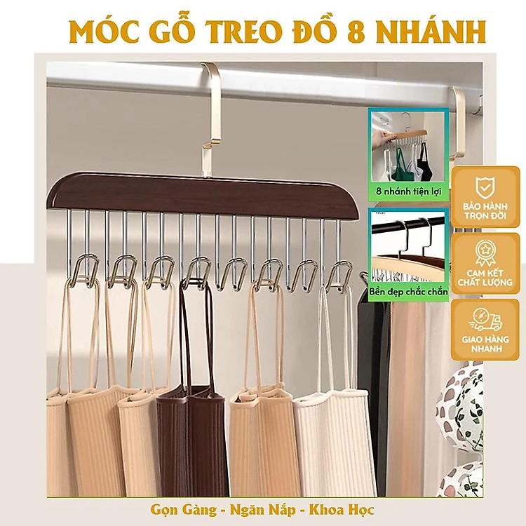 Móc Gỗ Treo Đồ Lót Áo Ngực Áo 2 Dây Bra Gosashi Giá Treo 8 Mắc Bằng Gỗ Treo Áo Lót Cà Vạt Thắt Lưng Túi Xách Gọn Gàng