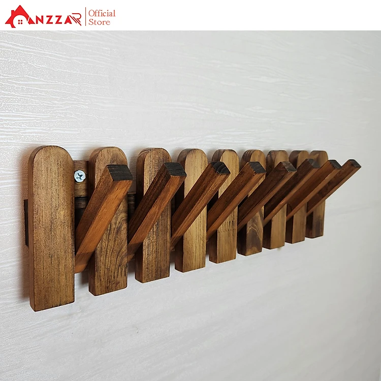 Móc gỗ treo tường Anzzar, móc treo quần áo, phụ kiện, giá gỗ treo quần áo-MT05