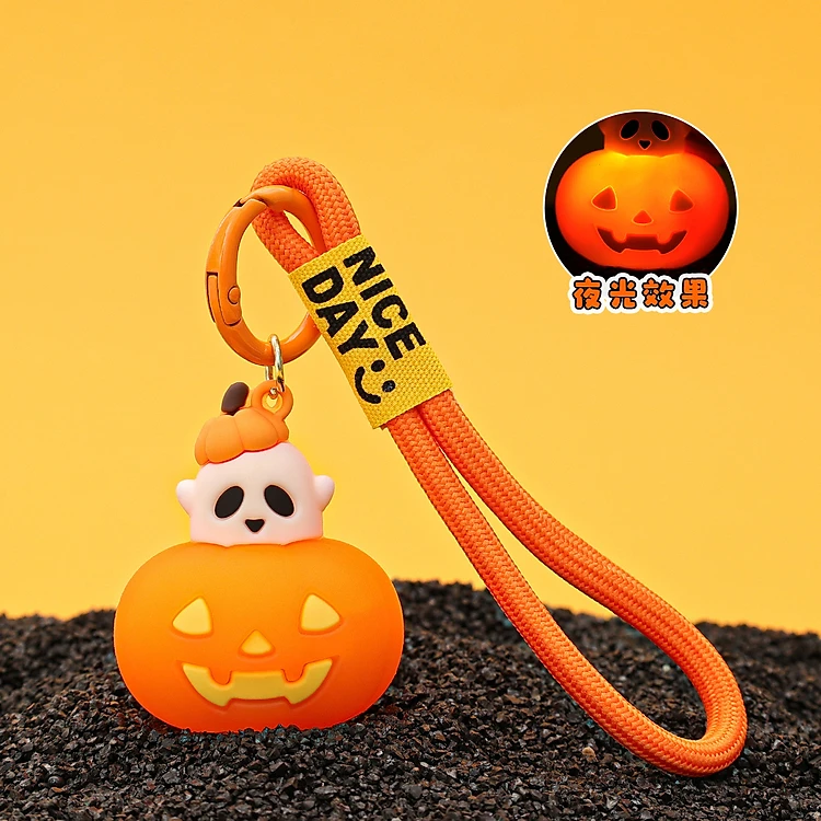 Móc khóa bí ngô Halloween có đèn phát sáng dùng làm quà tặng trang trí