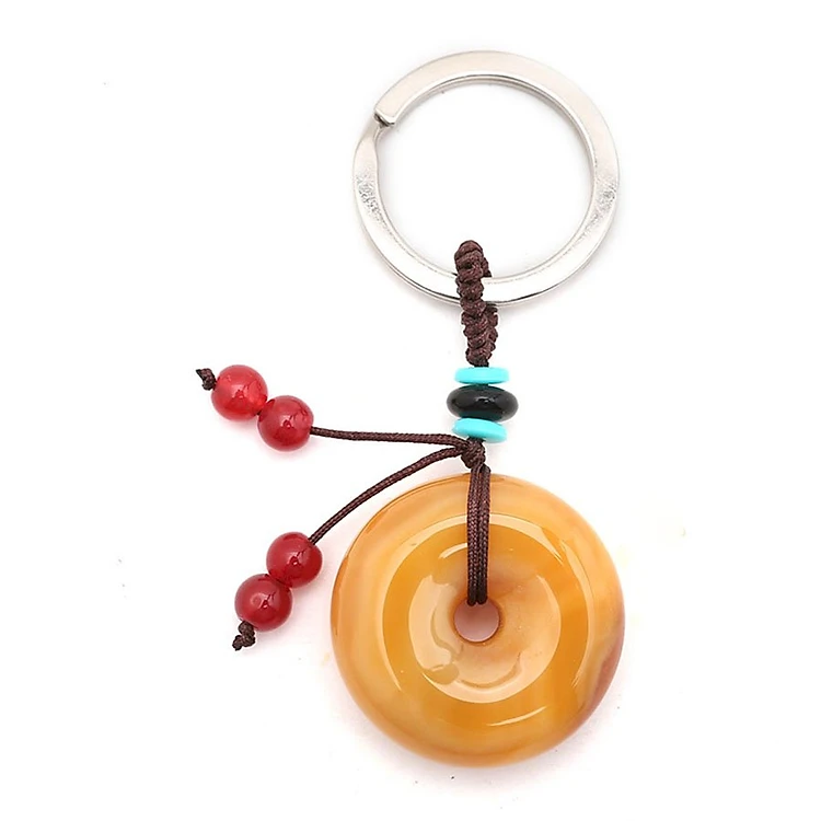• Móc Khóa Đồng Tiền Phú Quý Bằng Đá Mã Não - Nâu Vàng mang đến may mắn tài chính.
