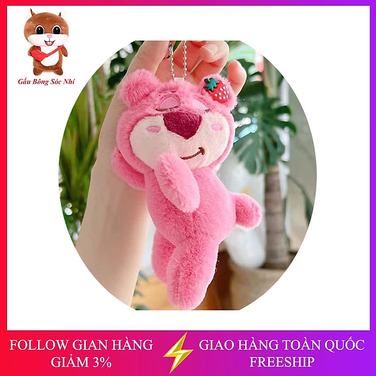 Móc khóa gấu bông gấu dâu Lotso size to 16cm treo balo túi ví thời trang