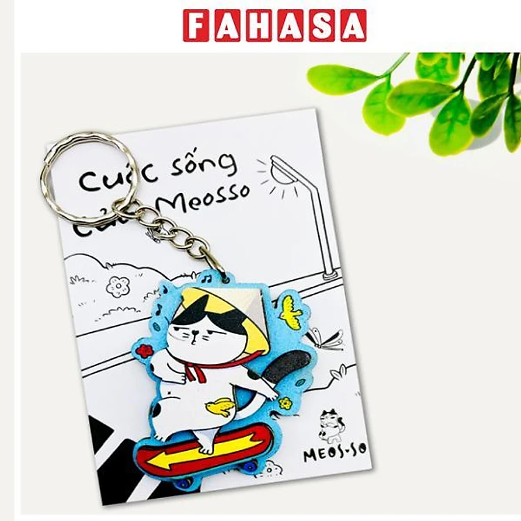 Móc Khóa Gỗ - Mèo Lướt Ván - Meosso