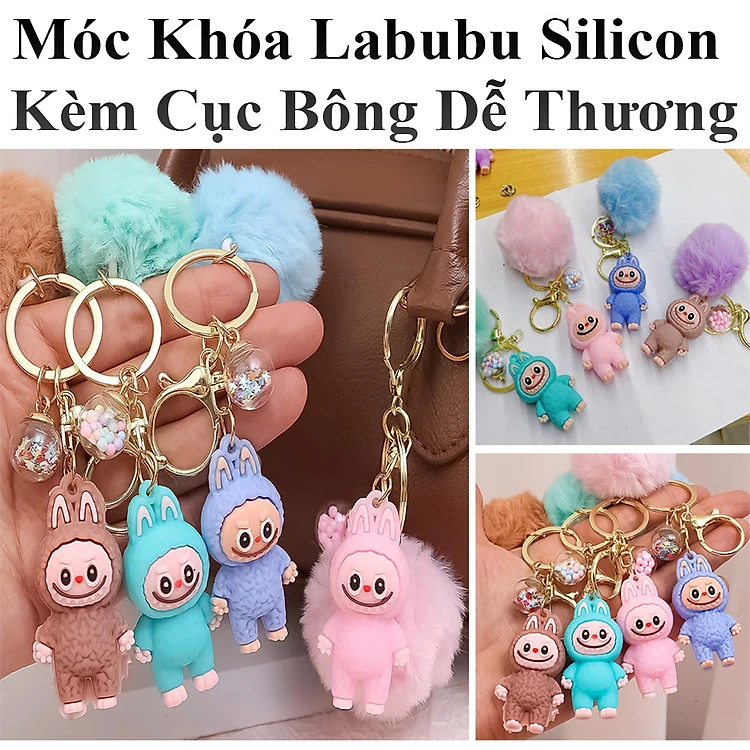 Móc Khóa Labubu Silicon Kèm Cục Bông Dễ Thương