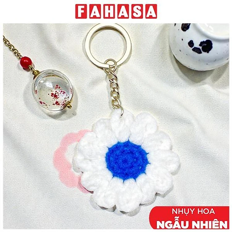 Móc Khoá Len Cúc Hoạ Mi - Màu Trắng (Nhụy Hoa Màu Ngẫu Nhiên)
