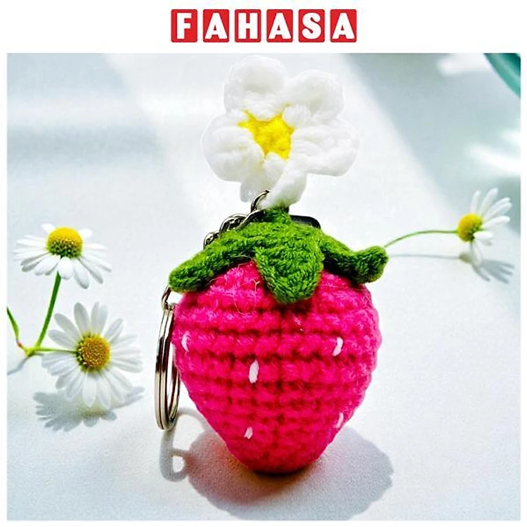 Móc Khoá Len Dâu Tây - Màu Hồng