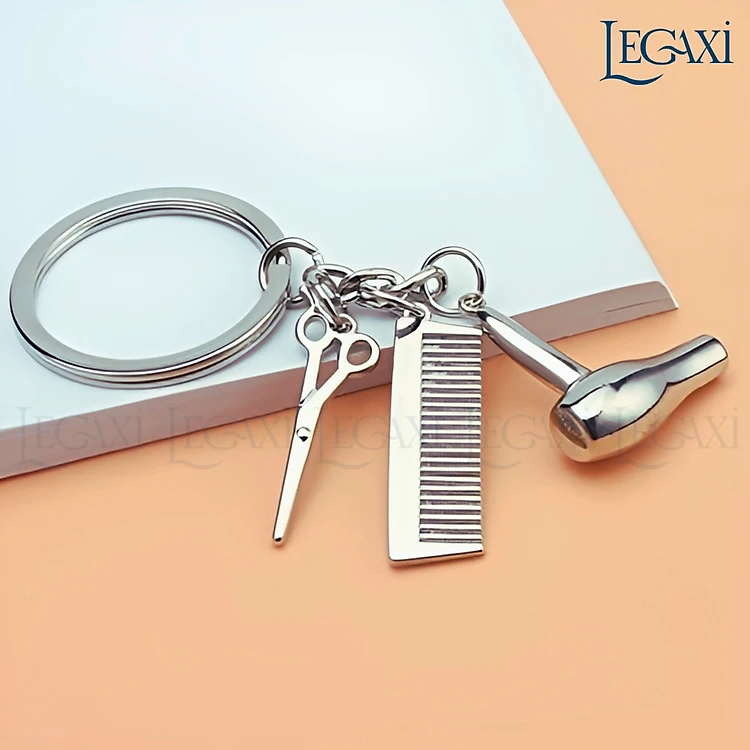 Móc Khóa Lược Máy Sấy Kéo Cắt Tóc Treo Chìa Khóa Salon Makeup Hair Làm Đẹp Spa Legaxi