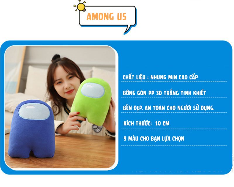 - Thú nhồi bông among us có thể chênh lệch về màu sắc và size do ánh sáng và cách đo khác nhau.