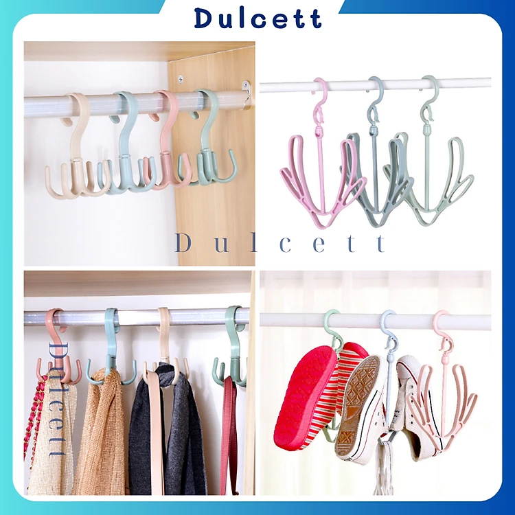 Móc nhựa treo phơi đồ 4 cạnh, móc treo 4 chấu xoay 360 thông minh, Móc treo tiện lợi.