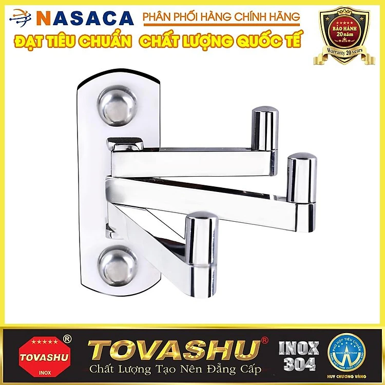 Móc quần áo TOVASHU 3 chia treo sau cửa inox 304 (Inox 304 - Bảo hành 20 năm)