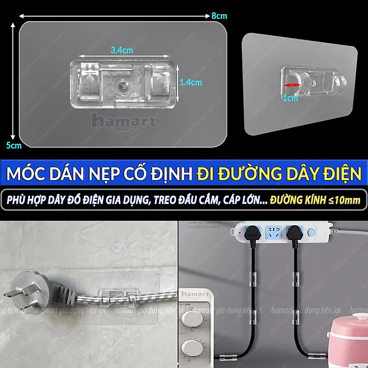 Móc Treo Đi Đường Dây Cáp Điện Dán Tường Cỡ To 8x5 CM Chịu Tải Lớn Siêu Dính Tối Ưu Không Gian