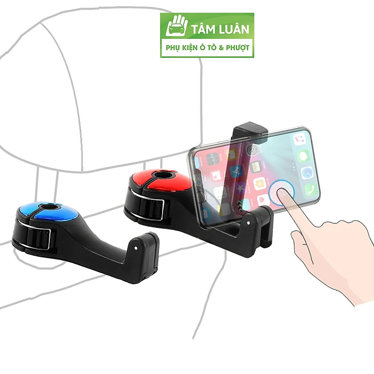 Móc treo đồ trên xe ô tô kiêm giá đỡ điện thoại gắn lưng ghế xe hơi - phụ kiện ô tô Tâm Luân