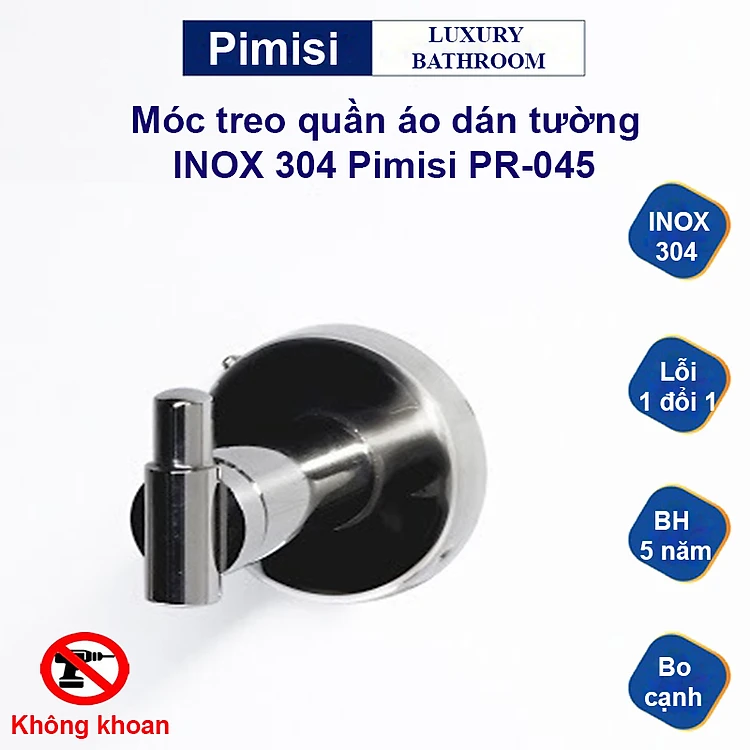 Móc treo đơn Pimisi inox 304 DÁN TƯỜNG dùng để treo quần áo - khăn tắm - phụ kiện - đồ dùng gia đình | Hàng chính hãng