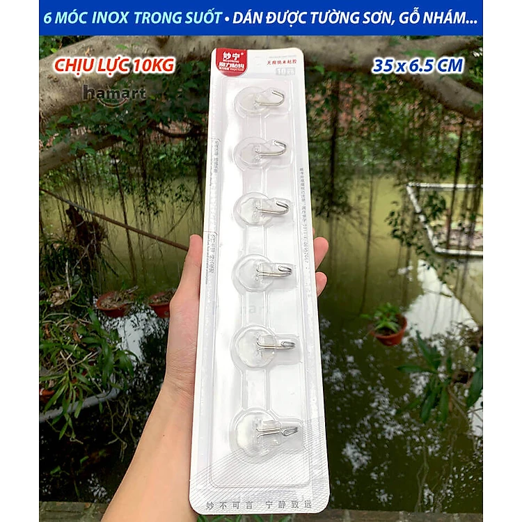 Móc Treo Quần Áo Dán Tường Tường 6 Nhánh Treo Khăn Phòng Tắm Nhà Bếp Đa Năng Siêu Dính Chịu Tải Lớn TẶNG Thanh Cán