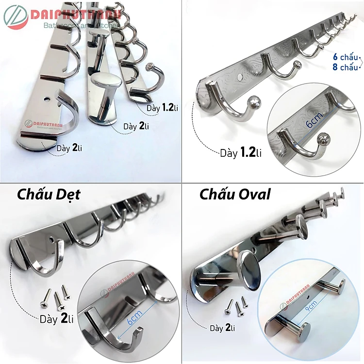 Móc Treo Quần Áo Inox SUS304 Nhiều Mẫu - Nhiều độ dài 6 đến 8 chấu