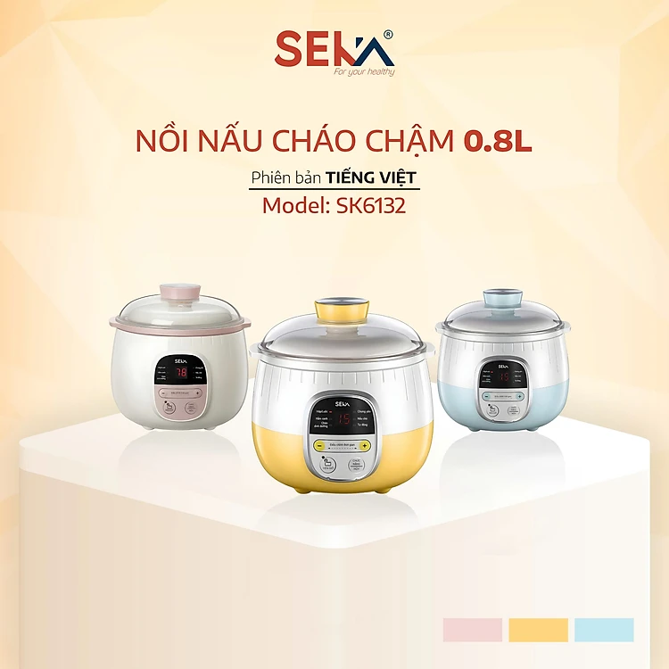 (Model 2025) Nồi Nấu Chậm Đa Năng SEKA SK6132 Nồi Nấu Cháo, Ninh Hầm Hấp 0.8L Hàng Chính Hãng