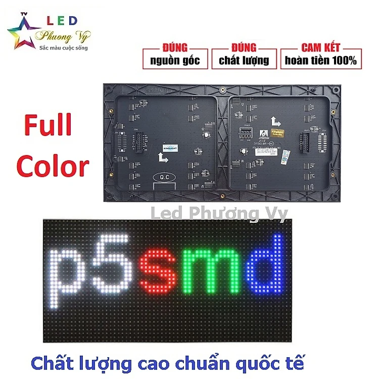 - Module led p5 full màu trong nhà chất lượng với độ hiển thị màu sắc cao lên tới 16 triệu màu, khoảng cách giữa 2 điểm ảnh 5mm, nên cho hình ảnh sinh động và màu sắc tự nhiên.
