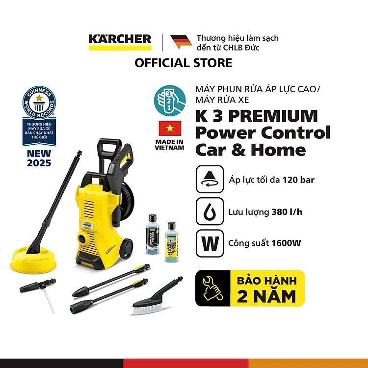 [Mới 2025] Máy phun rửa áp lực cao Karcher K 3 Premium Power Control - Công suất 1600W - Bảo hành 24 tháng - Hàng Chính Hãng