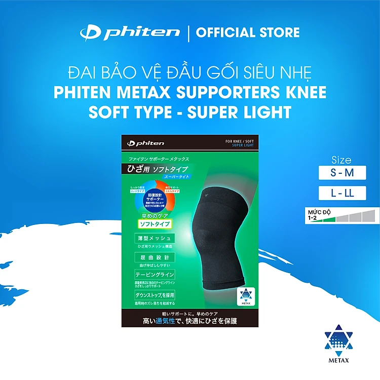 Đai bảo vệ đầu gối loại siêu nhẹ Phiten supporter knee soft super light AP254014/AP254016