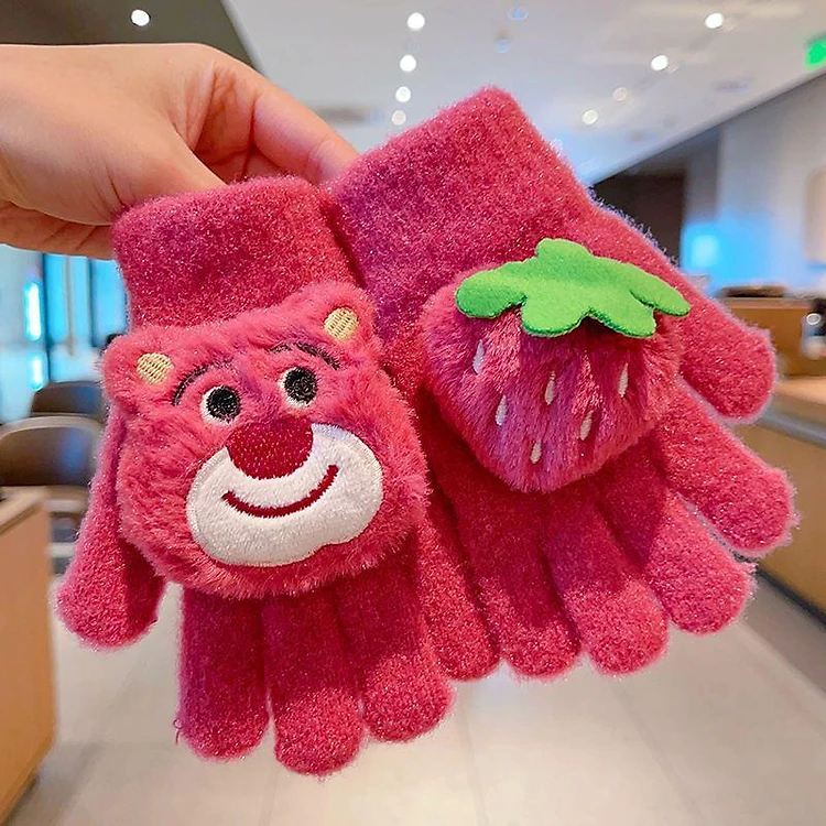 Mới găng tay lông xù kiểu hoạt hình gấu dâu tây và siêu nhân nhện đáng yêu cho bé