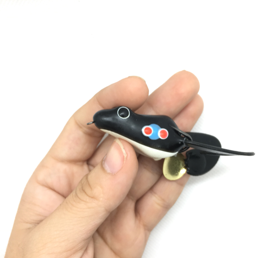 Màu sắc đẹp, bắt mắt, được vẽ thủ công từ đôi mắt đến từng chấm bi nhỏ giúp con mồi có đôi mắt chân thật giống với nhái tự nhiên, đánh lừa con cá và kéo cá táp mồi nhiều hơn.