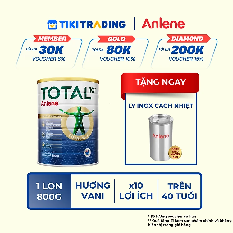 [MỚI] Sữa bột bổ sung dinh dưỡng Anlene Total 10 lon 800g Tặng 1 Nồi Inox Hoặc Chảo 18cm
