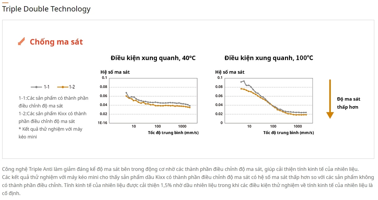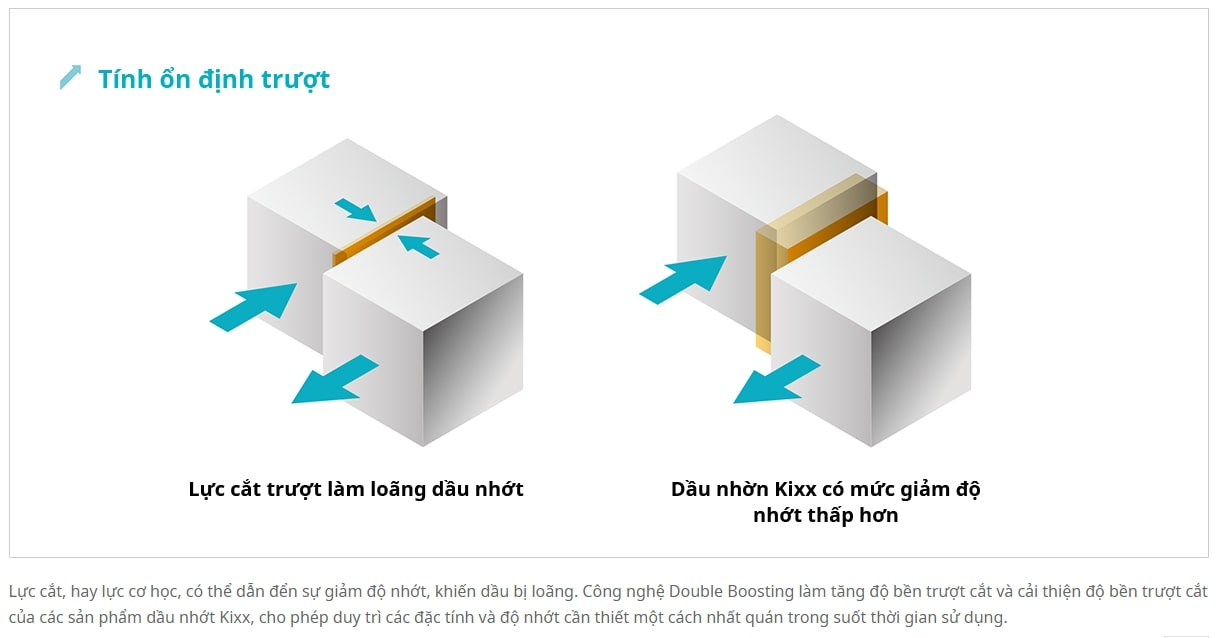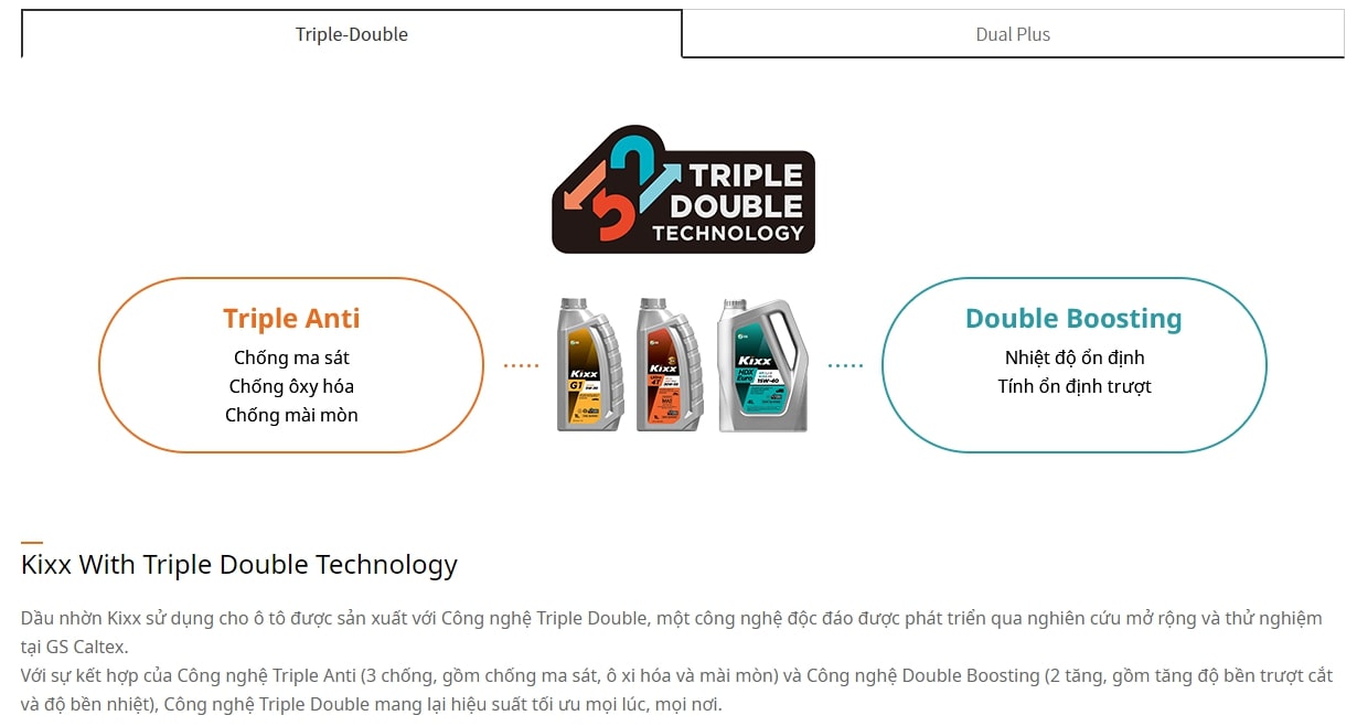 “Triple Double Technology" Công nghệ Hai nâng Ba chống kỹ thuật đặc biệt của dầu máy Kixx