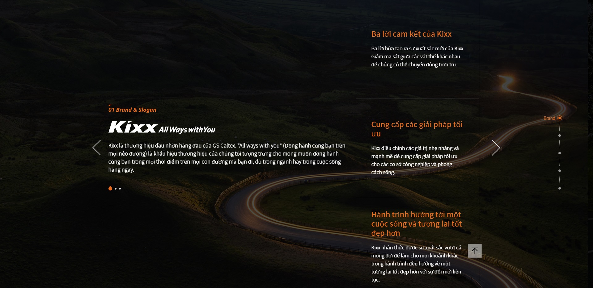 Kixx là thương hiệu dầu nhờn hàng đầu của GS Caltex. “All ways with you” (Đồng hành cùng bạn trên mọi nẻo đường) là khẩu hiệu thương hiệu của chúng tôi tượng trưng cho mong muốn đồng hành cùng bạn trong mọi thời điểm trên mọi con đường mà bạn đi, dù trong ngành hay trong cuộc sống hằng ngày.