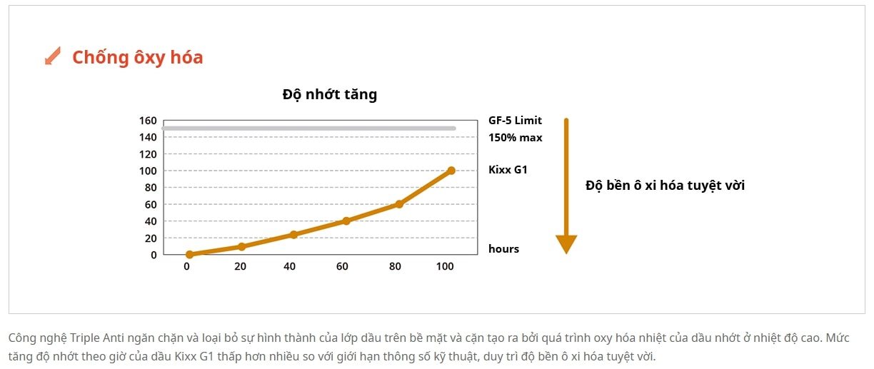 Khả năng chống ôxy hóa tuyệt vời và độ bay hơi thấp sẽ kéo dài khoảng cách giữa các lần cần thay dầu.