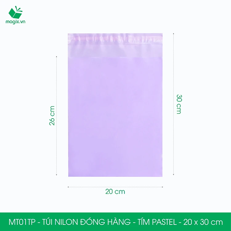 MT01TP - 20x30 cm - Túi nilon gói hàng - 300 túi niêm phong đóng hàng màu xanh pastel tím pastel