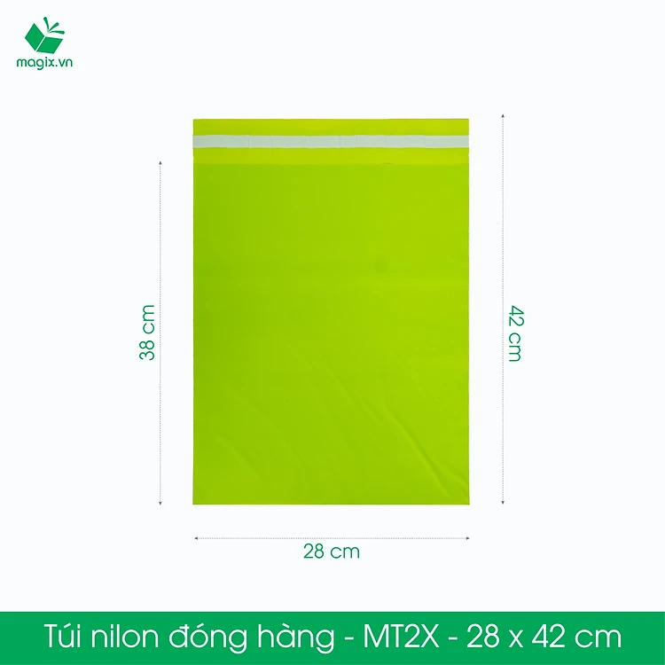 MT2X - 28x42 cm - Túi nilon gói hàng - 300 túi niêm phong đóng hàng màu xanh lá mạ