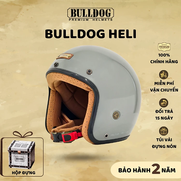 Mũ Bảo Hiểm 3/4 Cổ Điển BULLDOG Heli Sợi Thuỷ Tinh
