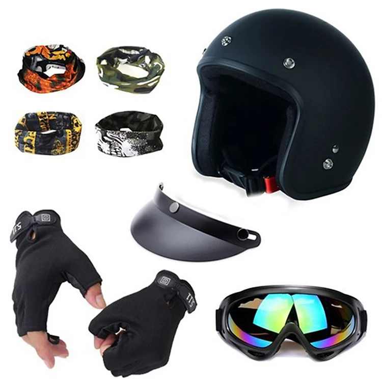 Mũ Bảo Hiểm 3/4 Màu SRT -Combo 5 món chống nắng đa năng siêu tiện lợi cho phượt thủ (Mũ, Kính UV, Lưỡi chai, Khăn đa năng, găng tay 551)