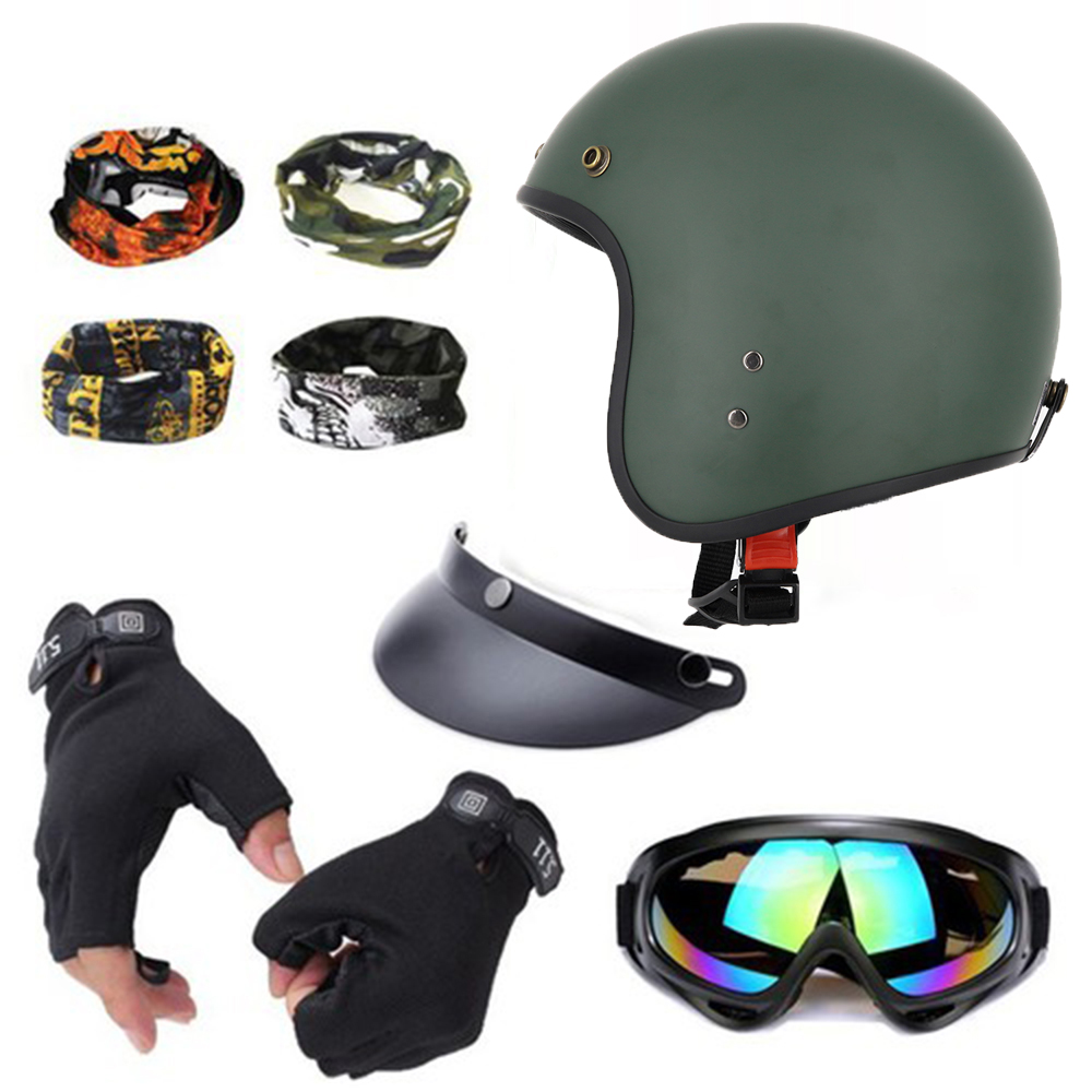 Mũ Bảo Hiểm 3/4 SRT Kèm Combo chống nắng cao cấp dành cho phượt thủ (Khăn đa năng, Găng tay 551, Kính UV)