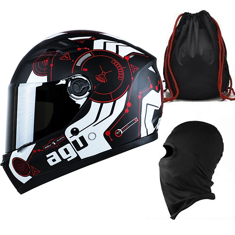 Mũ Bảo Hiểm Đẹp Fullface AGU Tem 43 + Khăn Ninja + Tặng kèm túi đựng nón chống trầy_ Nhiều màu _ Nón Fullface _ Kính trà