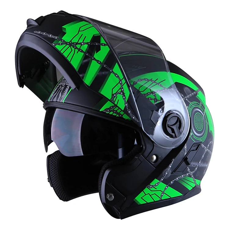 - Phần cằm có thể lật được biến nón fullface trở thành nón 3/4 thật dễ dàng.