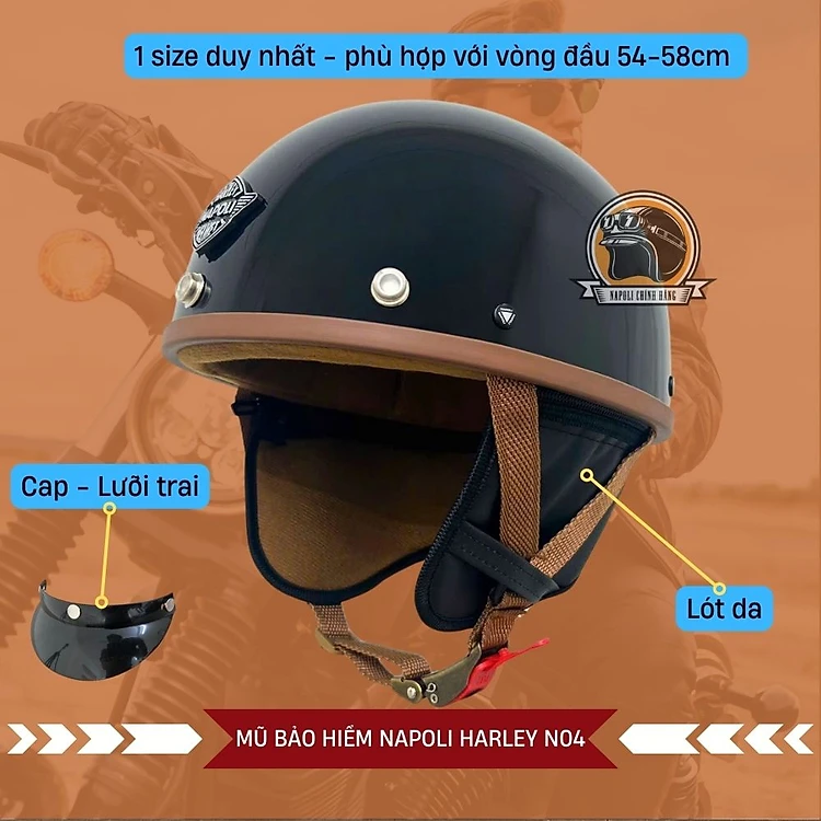 Mũ Bảo Hiểm Napoli 1/2 N04 [FREESHIP] [CHÍNH HÃNG] - Nón Bảo Hiểm Nửa Đầu Napoli Harley N120