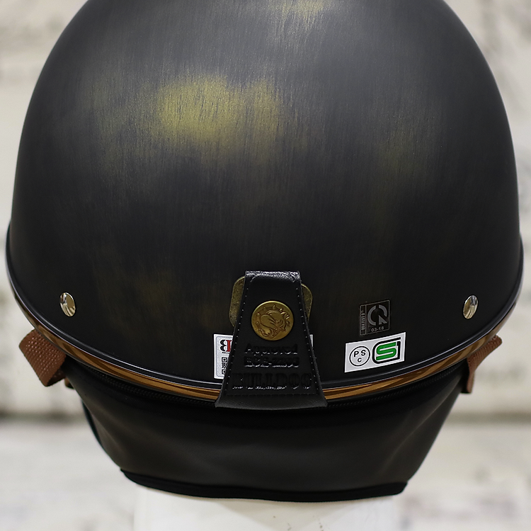 Phần nút đuôi phía sau dập chìm tên thương hiệu Bulldog cùng với tiêu chuẩn mũ ECE 22.05. Phần nút đuôi này thực tế còn là dây quai dùng để treo mũ, tránh tình trạng làm trầy, tróc sơn mũ khi treo.