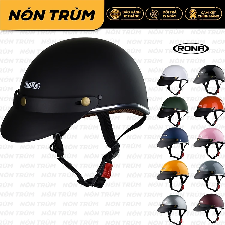 Mũ bảo hiểm xe máy nửa đầu Rona Haly viền bạc, nón bảo hiểm freesize chính hãng