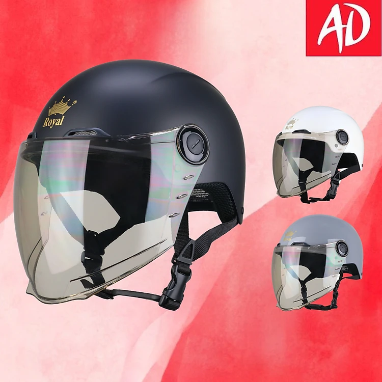Mũ bảo hiểm nửa đầu Royal M555 có kính dài màu trà hạn chế chói nắng dành cho nam nữ đi xe máy