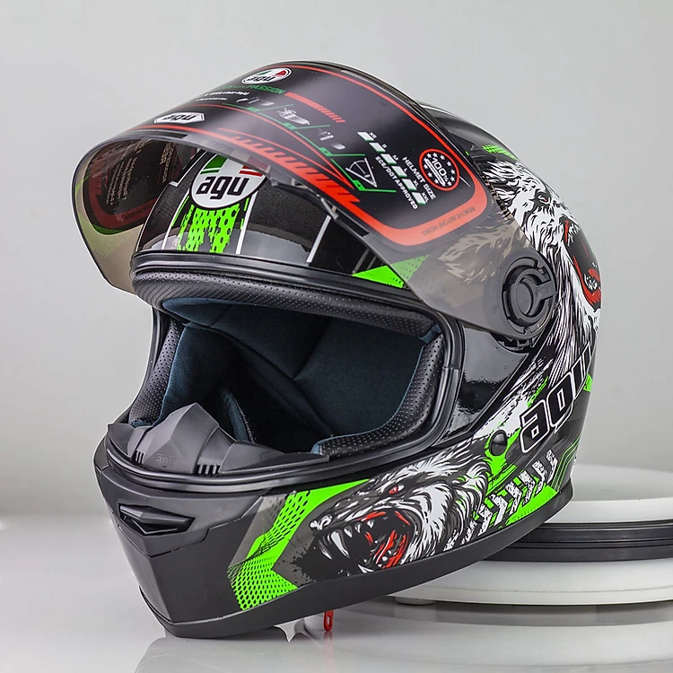 Mũ Bảo Hiểm Phượt Fullface AGU Tem Sói Xanh Lá