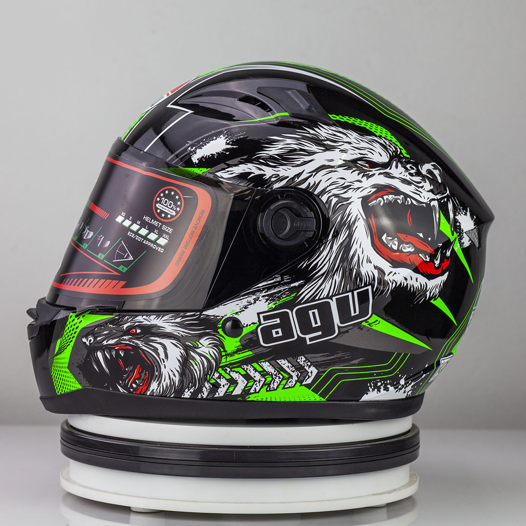 – Thông số kỹ thuật mũ bảo hiểm fullface AGU tem sói xanh lá:
