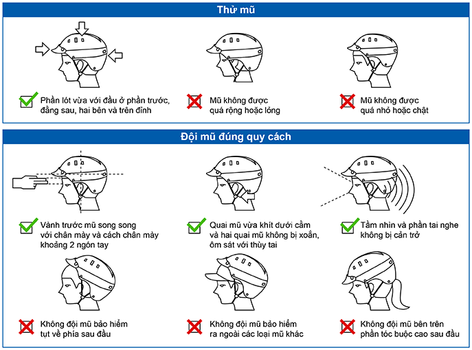 Hướng dẫn sử dụng Xác định cỡ nón phù hợp:
