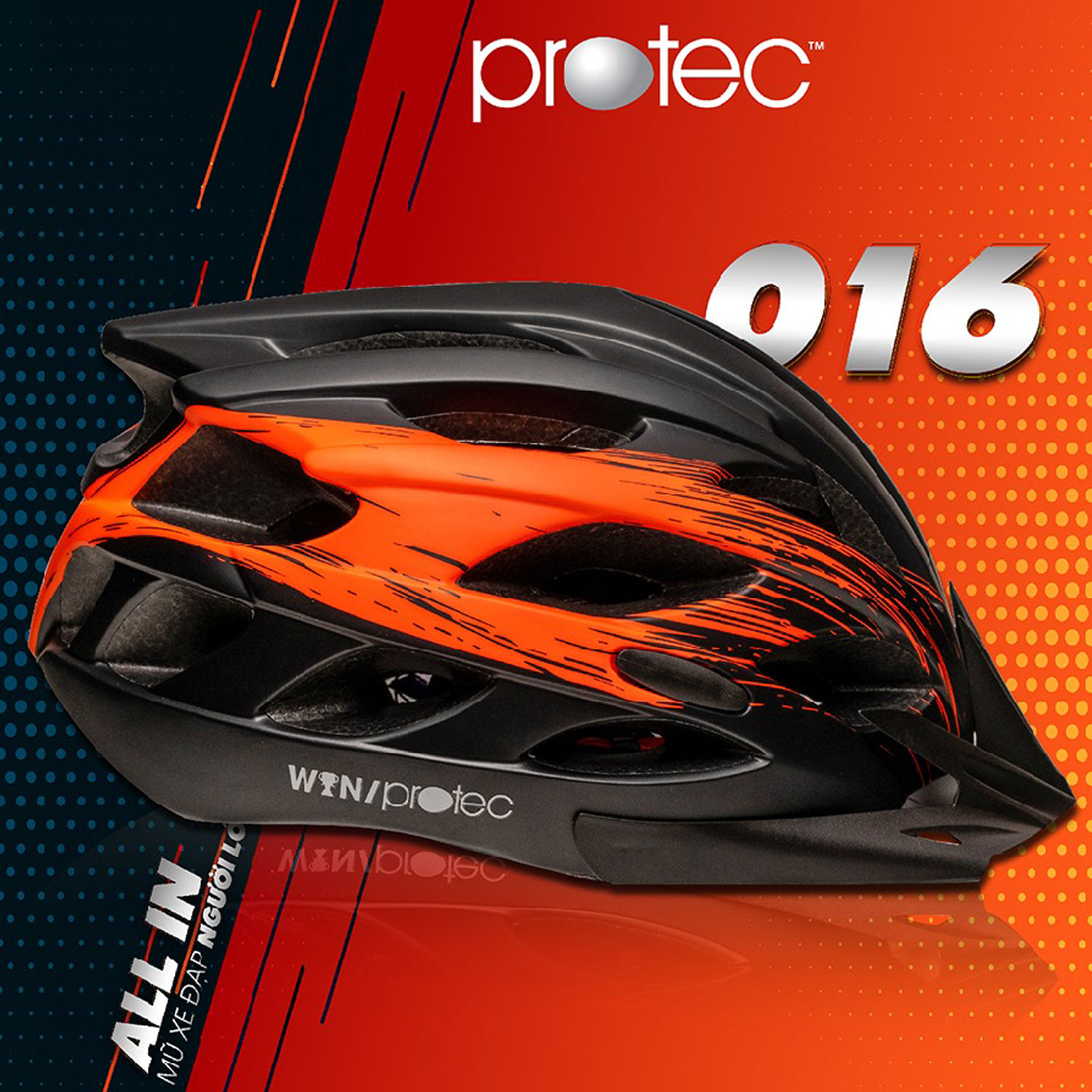 Mũ bảo hiểm xe đạp WIN 016 là dòng sản phẩm mũ bảo hiểm xe đạp dành cho người lớn mới ra mắt của Protec. Mũ đạt tiêu chuẩn Châu Âu với thiết kế khoa học, thoáng khí, trọng lượng nhẹ. Mũ được dùng khi đi xe đạp, chơi các hoạt động thể thao ngoài trời cũng như dành cho các tay đua chuyên nghiệp.